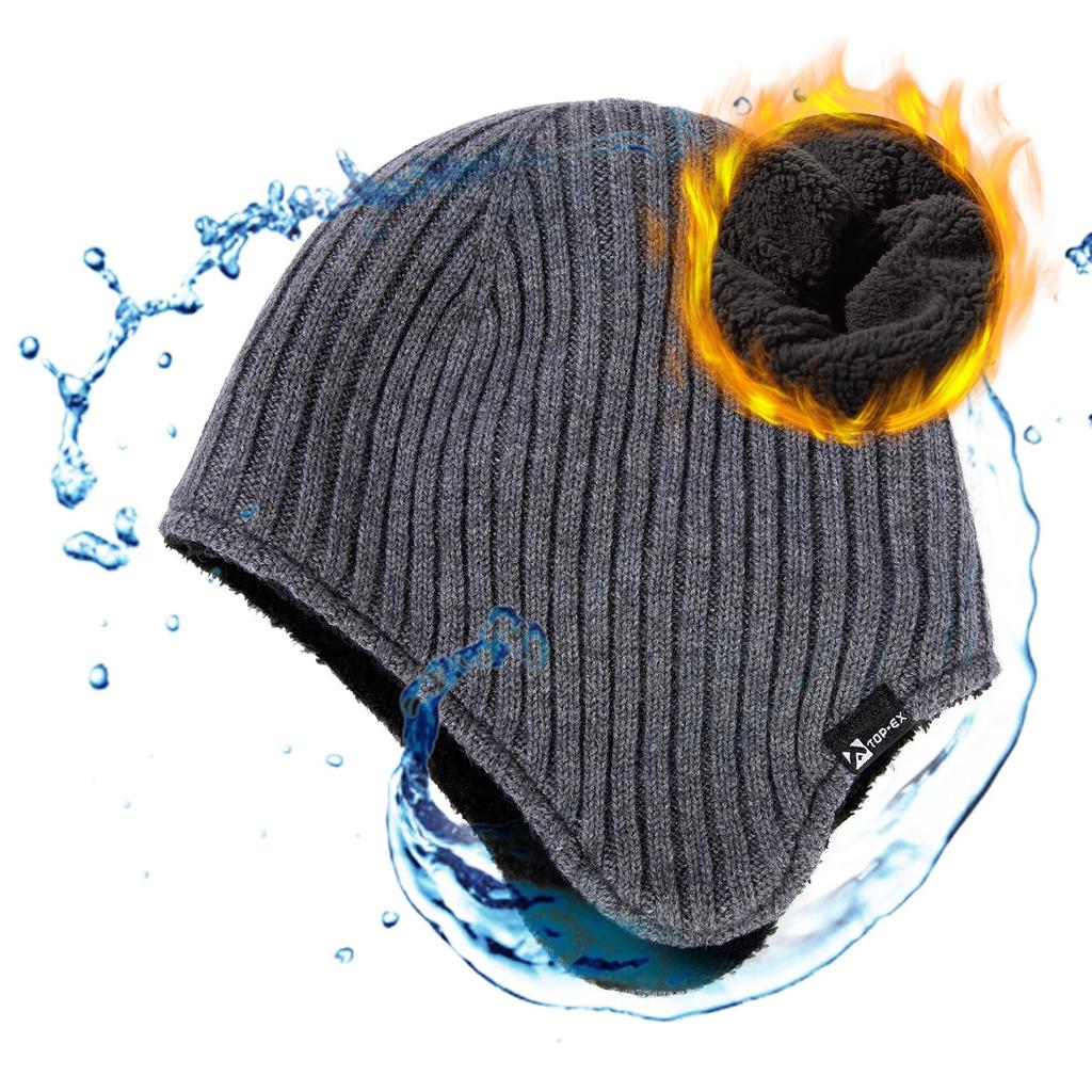 Szara Czapka Dzianinowa Duży Rozmiar z Uszami Wełna Merino Dzianina Narciarska Snowboard Mała Twarz Zimno [TOP-EX] Męska Klapki, Czapka, Czapka, Czapka, Czapka, Efekt, Ochrona, Jesień,