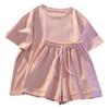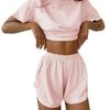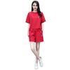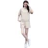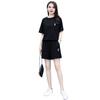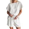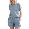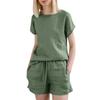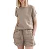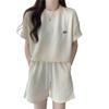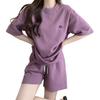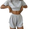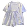 2 szt./zestaw Letni damski dres Okrągły dekolt Nadruk z literami Jednolity kolor Koszulka z krótkim rękawem Szorty ze sznurkiem i elastyczną talią Do sportu