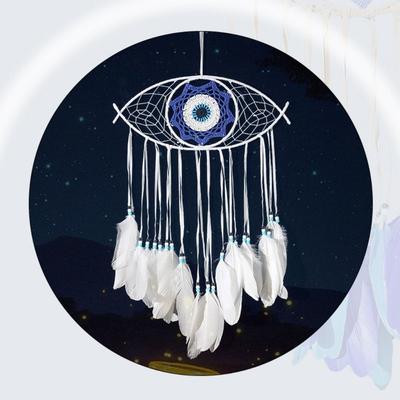 Sztuka Ścienna Ręcznie Robiony Łapacz Snów Kreatywny Zabawny Wisiorek Z Okiem Zła Niebieskie Pióro Makrama Wisząca na Ścianie Sypialnia
