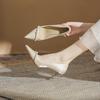 2024 Skóra owcza Wysokie obcasy Damskie Cienkie obcasy Europejskie Nowe Płytkie buty pojedyncze Szpiczaste Perłowe Styl wieczorowy Buty damskie