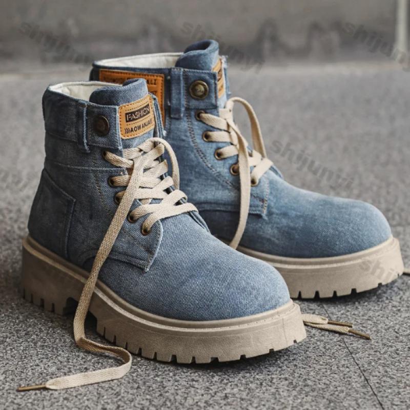 Męskie 2025 Jesień Nowe Brytyjskie Kowbojki Wysokie Retro Platforma Wygodne Antypoślizgowe Gruba Podeszwa Sznurowane Sportowe Motocyklowe Buty