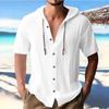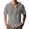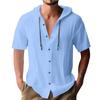 Męska koszula casual z krótkim rękawem w jednolitym kolorze z bawełnianym kardiganem z kapturem i sznurkiem do ściągania jest modna, wszechstronna i luźna