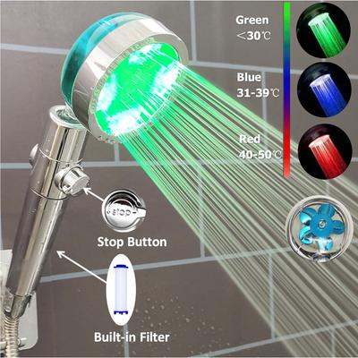 Głowica prysznicowa o wysokim ciśnieniu, wyświetlacz LED z cyfrowym wyświetlaczem temperatury, dysza natryskowa, regulacja temperatury, kolorowa deszczownica, głowica prysznicowa do łazienki