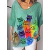 Women's T Shirt Painting Cat Print Clothing V-Neck Short Sleeve Oversized Streetwear Daily Casual Basics Tops Tee Shirt