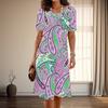Damska Moda Pełna Gracji Retro i Wspaniały Nadruk Lato Wiosna Krótki Rękaw Okrągły Dekolt Sukienki Casualowe