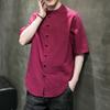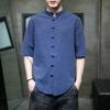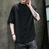 Summer Tang Suit Retro Chinese Style Cotton and Linen Three-quarter Sleeve Shirt Men's Solid Color Stand-up Collar Button Short-sleeved Shirt