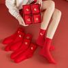 5 Pairs of All Cotton Mid Calf Red Socks for Men's Zodiac Year In Autumn and Winter