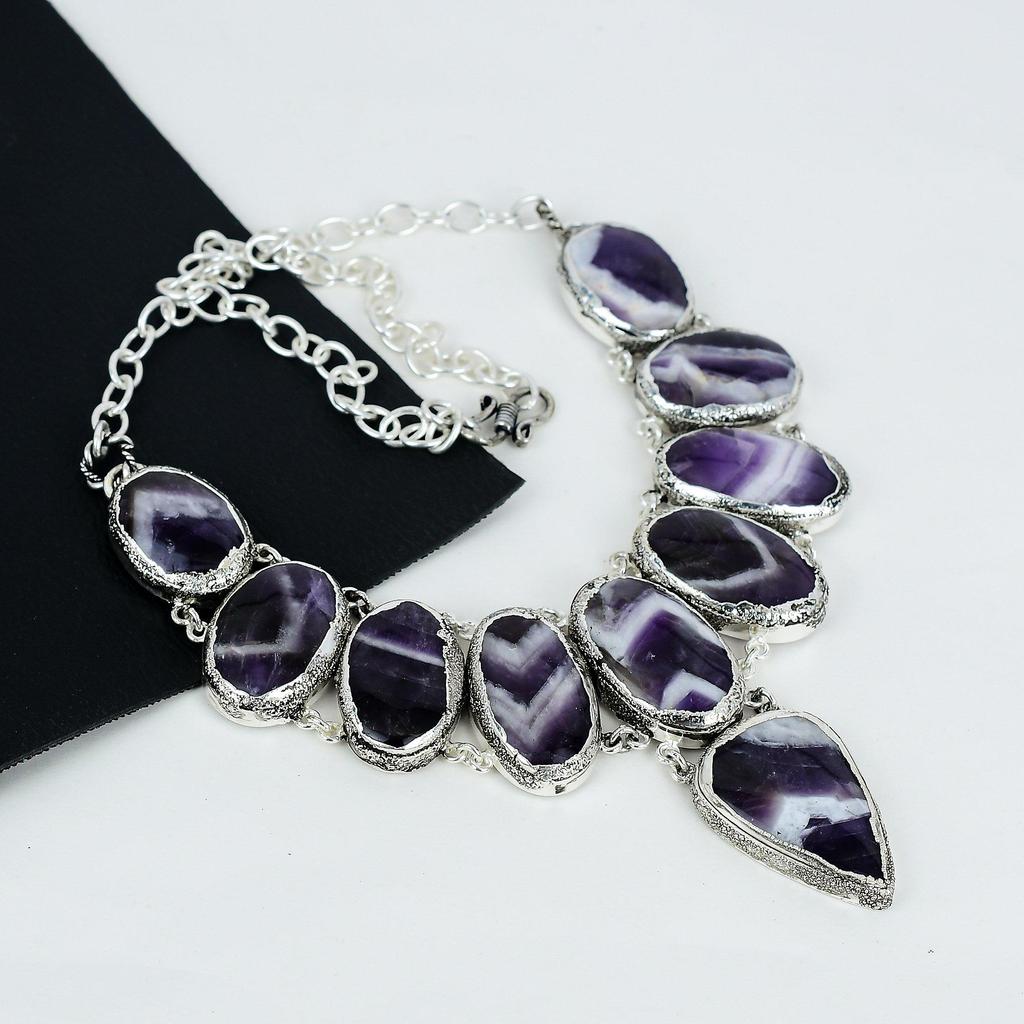 Naturalny ametystowy kamień szlachetny Chevron ręcznie robiony naszyjnik ze srebra próby 925 Electroform, ametystowy kamień szlachetny Chevron dla żony Unisex naszyjnik, prezenty