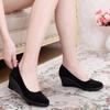 Płócienne buty na koturnie damskie pojedyncze buty wiosenne hotelowe czarne buty do pracy damskie buty do tańca antypoślizgowe płaskie buty na miękkiej podeszwie buty dla mamy
