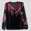 Elegancka Damska Koronkowa Koszulka z Rozszerzanymi Rękawami z Diamentami Wiosna Lato Duży Rozmiar Moda Slim Wszechstronna Vintage Dekolt w Serek Graficzne Topy