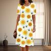 Moda Damska Pełne wdzięku Sukienki Codzienne z Nadrukiem Słonecznika na Lato i Wiosnę z Krótkim Rękawem i Okrągłym Dekoltem