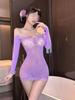 Sex Underwear One-word Collar Perspective Cheongsam Tube Top Sexy Lace Nightdress Sexy Pure Desire Nightdress Women