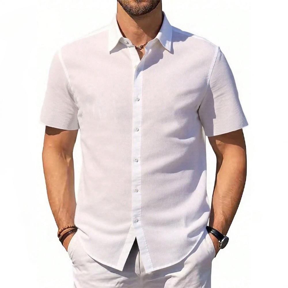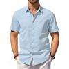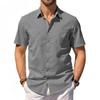 Męskie Bawełniane lniane koszule męskie z krótkim rękawem Lato Jednolity kolor Kołnierzyk wykładany Swobodny styl plażowy Bluzki w dużych rozmiarach