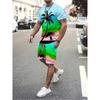 Vacation Style 2pcs Set for Boys Casual Sports Beach Pattern Print Comfortable And Versatile Short-Sleeve T-Shirt Shorts Outfit