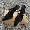 Sweet temperament pointed mesh bag head half drag women 2025 spring and autumn new beautiful satin sandals stiletto high heels