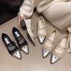 French pointed single shoes women's shoes spring 2025 new gentle evening wind versatile metal chain Mary Jane shoes
