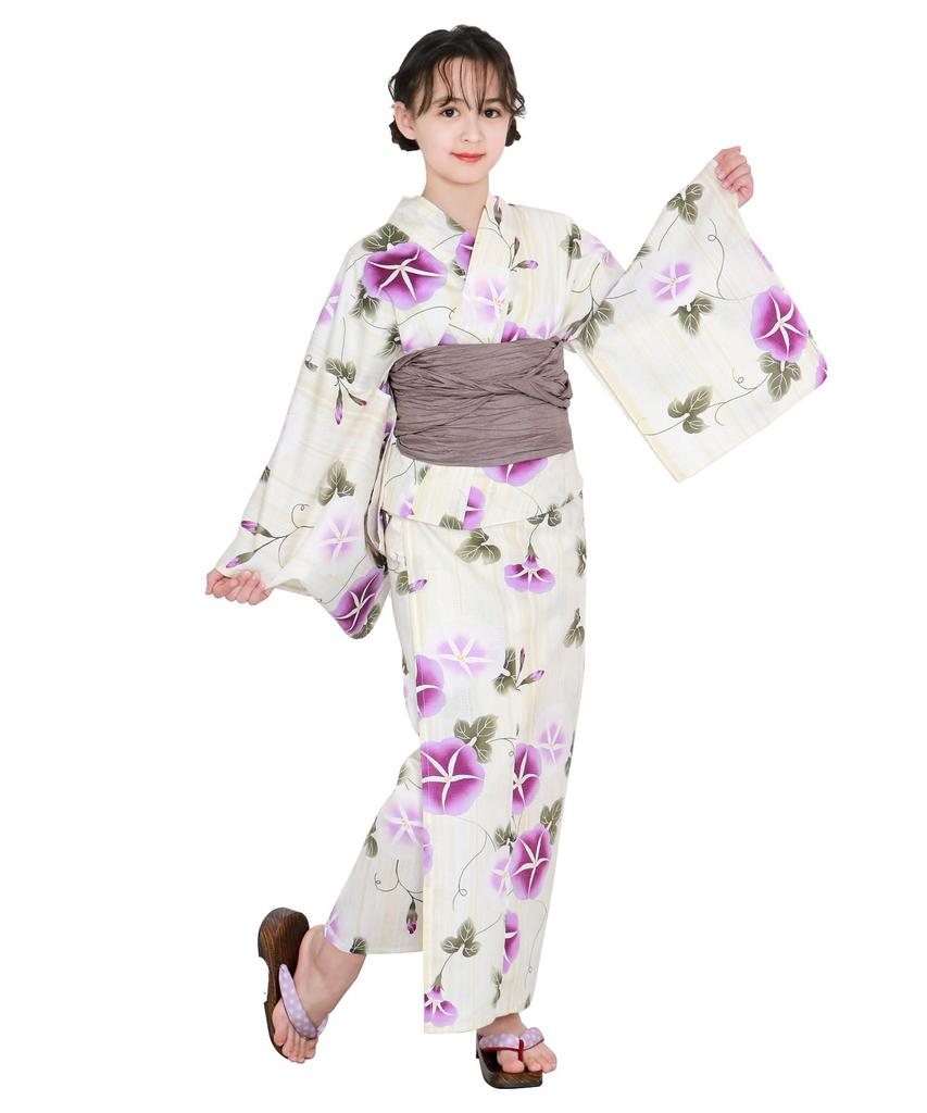 Zestaw do zmiany yukaty Heiko dla dziewcząt Glory Transparent [KYOETSU] Zestaw, Yukata, Typ dwuczęściowy, Dla dziewcząt, Niebielony, Splot, 3-częściowy (Yukata, Obi, Geta),