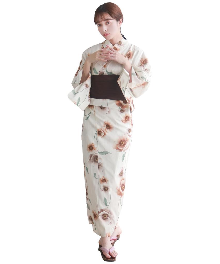Zestaw do zmiany yukaty heiko rozmiar AB pasuje karmelowy [KYOETSU] zestaw, splot, niebielony, typ dwuczęściowy, 4-częściowy (yukata, obi, bielizna, geta), kobiet (jeden
