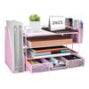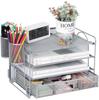 Stojak do przechowywania na biurko z przegródką na dokumenty, 5 uchwytami na długopisy, na listy, dokumenty, artykuły, organizacja, JINS&VICO, szuflady, pudełko, poziomy, uchwyt, taca, półka, metal, siatka, długopis,