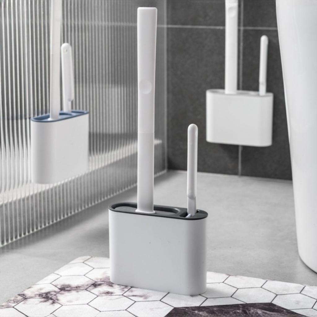 Zestaw szczotek do WC: Szczotki toaletowe wykonane z wysokiej jakości tworzywa ABS + główka silikonowa. Powłoka antyadhezyjna zapobiega przywieraniu brudu do włosia, co zapewnia strefę wolną od zarazków.