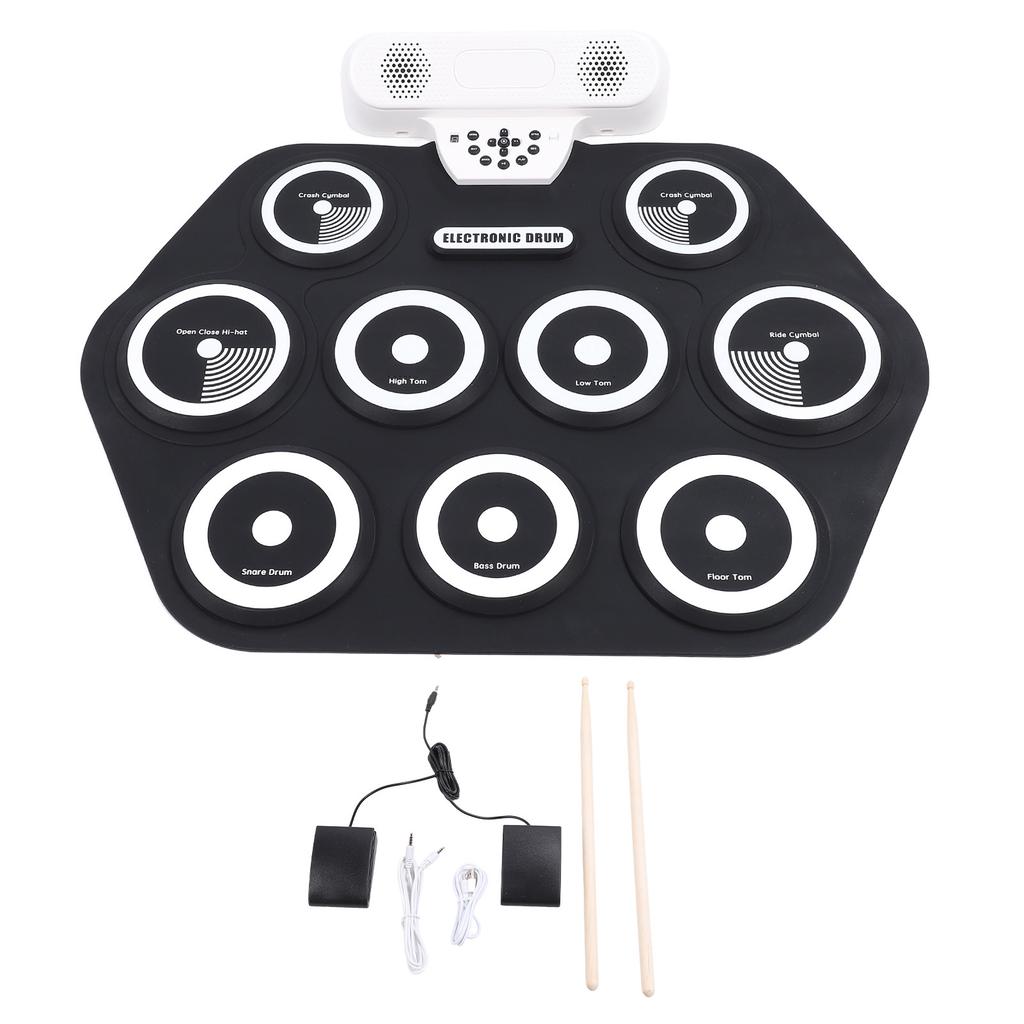 Electronic Drum Pad Portable Hand Rolled Drum Pad Double Speakers Bluetooth Rechargeable Silicone Ro