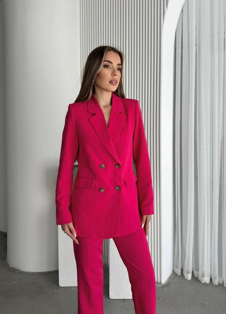 GILLAS QUEEN Women's Fuchsia Organic Linen Buttoned Blazer Jacket Trouser Suit