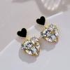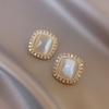 Kolczyki Silver Needle z opalem diamentowym, modne i wszechstronne, kolczyki w stylu lekkiego luksusu, proste i delikatne kolczyki z cyrkoniami