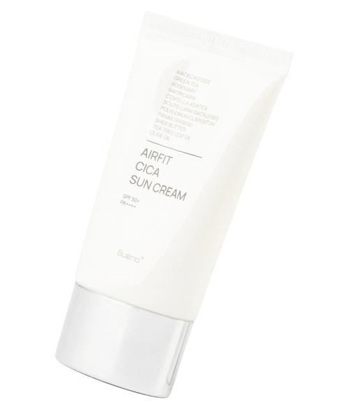 BUENO Air Fit Cica Sunscreen 50ml SPF50+ PA++++ is a lightweight sunscreen that gently adheres to the skin. It offers powerful UV protection with SPF50+ and PA++++, and is a multifunctional product for whitening and wrinkle improvement, providing protection and care against UV rays. With the inclusion of Cica ingredients, it minimizes skin irritation and provides a soothing effect. It additionally aids in skin hydration, making it suitable for use throughout the seasons.