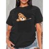 summer loose fitting casual Stylish Bear Pattern print round neck short sleeved T-shirt top