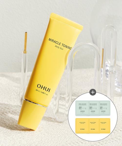 OHUI Miracle Toning Daily Sun 50ml provides powerful sun protection with SPF 50+, PA++++. The lightweight essence-type texture applies smoothly to the skin without leaving a white cast, making it suitable for both men and women. After application, skin appears clear and evenly toned, giving the look of a healthy glow. Experience water-glow toning effects to maintain bright and hydrated skin.