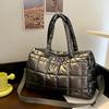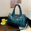 Szykowna pikowana torba typu puffer tote dla kobiet Jednokolorowa miękka tkanina Torba na ramię