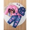 Zestaw 3-częściowy dla dzieci z nadrukiem dżinsowym 2024: Kamizelka, Bluzka z długim rękawem i Spodnie
