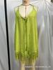 Letnia narzutka na bikini z frędzlami – jednokolorowa sukienka na wakacje na plaży