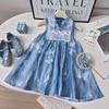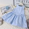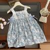 This charming sleeveless dress features a delightful blue and white floral pattern, perfect for any occasion. Crafted from soft and breathable cotton, it ensures comfort and style. The dress is accentuated with a lovely bowknot detail, adding a touch of elegance to the overall design. Ideal for sunny days, this dress offers both fashion and comfort for your little one.