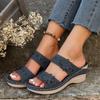 Summer Women Slippers Plus Size 42 Women's Shoes Retro Roman Sandals Women Pu Casual Flower Wedge Sandals Platform Slippers