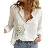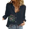 Damski top z klapkowym kołnierzykiem, modny, z długim rękawem, bawełniano-lniana koszula zapinana na guziki, damskie bluzki codzienne z nadrukiem