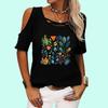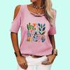 Damski T-shirt z odkrytymi ramionami Modny top z okrągłym dekoltem i kwiatowym nadrukiem Damski casualowy T-shirt z krótkim rękawem