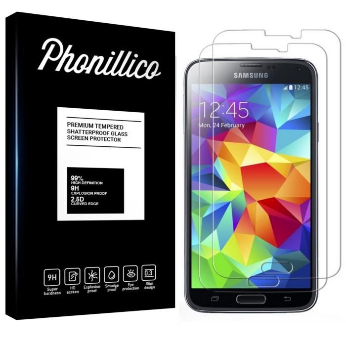 Film de protection d'écran - Phonillico® - Samsung Galaxy S5 - Pack de 2 - Verre trempé - Résistant aux rayures