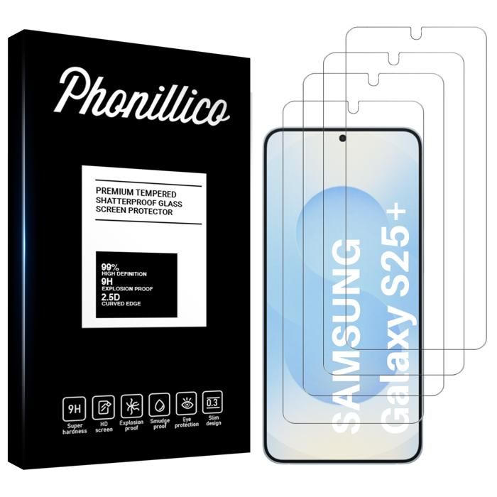 Verre Trempé - Phonillico - Samsung Galaxy S25 PLUS - Pack de 4 - Résistant aux rayures - Transparent