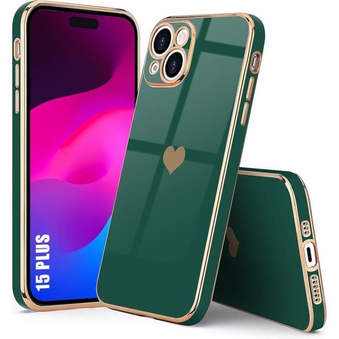 Coque Silicone - pour iPhone 15 Plus - Motif Cœur - Protection Anti-Rayures - Souple - Vert Nuit