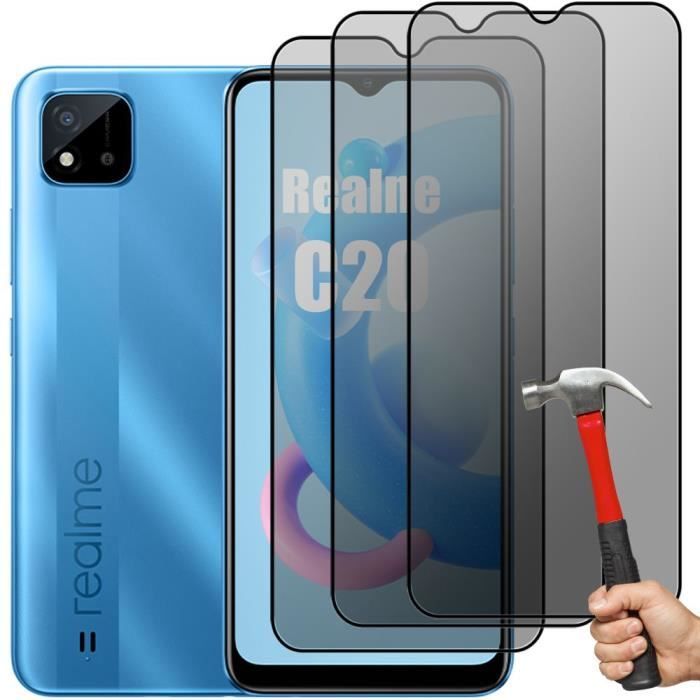 Lot de 3 Verre Trempé Anti-espion pour realme C20 - Noir Vitre Protection