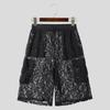 INCERUN Męskie elastyczne w pasie koronkowe ażurowe prześwitujące bez podszewki zakrywające krótkie szerokie spodnie