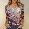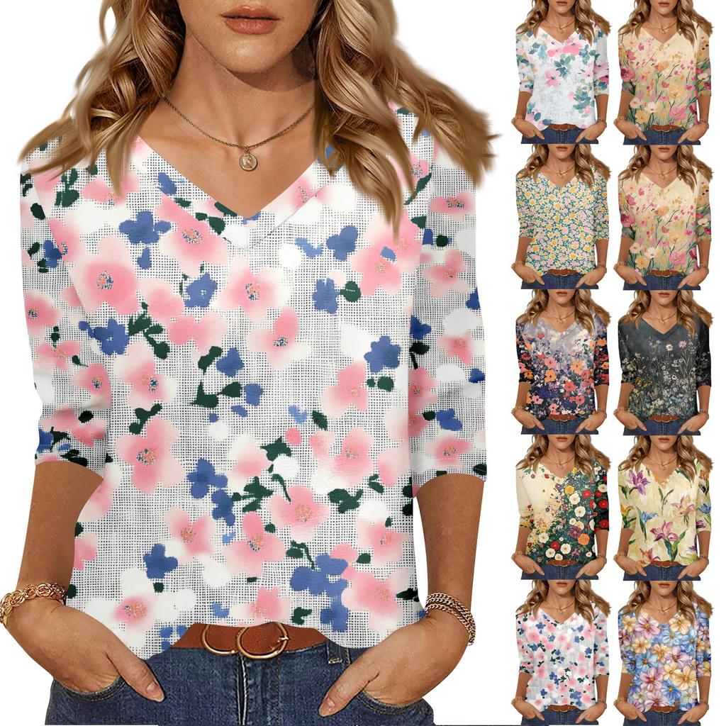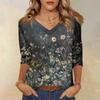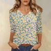 Bluzki damskie Koszula z rękawem trzy czwarte Dekolt w serek Luźna, swobodna koszula T-shirt z nadrukiem kwiatowym