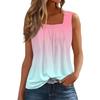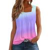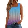 Letnia koszulka damska z nadrukiem, plisowana, kwadratowa, z kwadratowym kołnierzykiem i bez rękawów