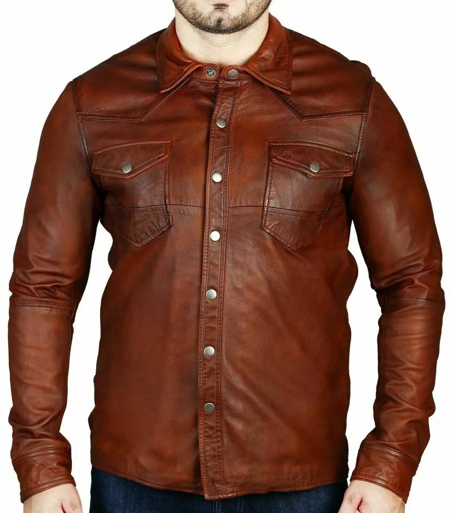 Nowa Męska Koszula Brązowa Ręcznie Robiona Skóra Jagnięca Stylowa Prawdziwa Miękka Imprezowa Casualowy Krój