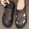 Skórzane sandały męskie noszą oddychające klapki plażowe 2024 nowe letnie męskie miękkie podeszwy dwufunkcyjne antypoślizgowe sandały z zakrytymi palcami