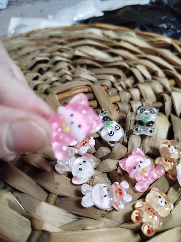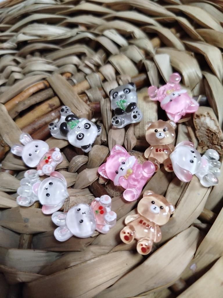 10 SZT Żywica Kawaii Kolorowe Cukierkowe Kolory Kreskówkowy Panda Królik Niedźwiedź Lis Płaski Kamień Figurka Scrapbook Kokarda DIY Materiały Rzemieślnicze
