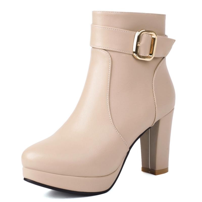 Platformowe Botki Damskie Jesień Zima Wysokie Obcasy Klamra Czerwone Czarne Krótkie Botki Eleganckie Buty na Imprezę Taneczną Duży Rozmiar