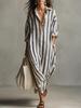 Moda damska Letnia wiosna w paski Drukuj 1/2 rękawy Dekolt w kształcie litery V Luźna talia Casual sukienki