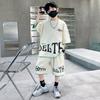 Letni Zestaw Ubrań Dziecięcych Dla Chłopców Nadruk z Literami Strój Sportowy Dzieci Nastolatek Bawełniane Stroje Casualowy Dres Kostium z Krótkim Rękawem